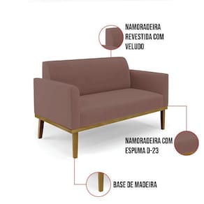 Sofá Namoradeira Com Poltrona Base De Madeira Fixa Castanho Marisa Veludo D03 - D?rossi Cor Rose