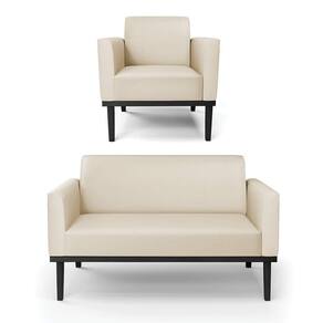 Sofá Namoradeira Com Poltrona Base De Madeira Fixa Preto Marisa Corino D03 - D\`rossi Cor Bege - Blush