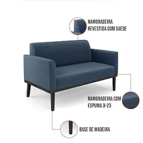 Todo mundo gosta de um ambiente bem decorado, e se for novidade melhor ainda não é mesmo? A DRossi, além de entregar beleza, qualidade e confiança aos clientes, ela dispõe das melhores opções em produtos, disponíveis no mercado! Se você quer um produto sofisticado, opte pelo Sofá Namoradeira com Poltrona Marisa. Este kit dispõe de um tom lindo no Azul Marinho, uma cor leve, neutra e delicada que combina com qualquer estilo de decoração. Ele fica perfeito na sala, escritório, quarto, varanda coberta e onde mais preferir! Sua estrutura é feita em madeira reforçada de eucalipto proveniente de reflorestamento. No assento/encosto contém um revestimento no tecido Suede, com estofamento em espuma prorelax D-23, garantindo maior conforto ao usuário. A sustentação da peça é dada pela Base de Madeira Fixa Preto, garantindo uma resistência melhor, para relaxar o dia todo com mais comodidade. O Sofá Namoradeira com Poltrona Marisa é ideal, para dar aquele realce que seu ambiente precisa. Tenho certeza que, esse móvel é a melhor compra que você irá fazer. Garanta já seu Kit e se acomode da melhor maneira possível!