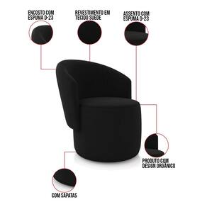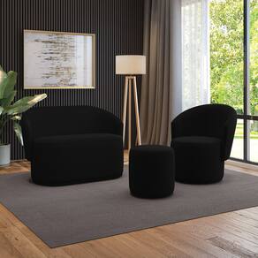 Sofá Namoradeira com Poltrona e Puff Orgânico Sala Malu Suede M11 - D`Rossi - Preto
