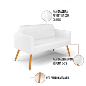 Todo mundo gosta de um ambiente bem decorado, e se for novidade melhor ainda não é mesmo? A D'Rossi, além de entregar beleza, qualidade e confiança aos clientes, ela dispõe das melhores opções em produtos, disponíveis no mercado! Se você quer um produto sofisticado, opte pelo Sofá Namoradeira com Poltrona Marisa. Este kit dispõe de um tom lindo no Branco, uma cor leve, neutra e delicada que combina com qualquer estilo de decoração. Ele fica perfeito na sala, escritório, quarto, varanda coberta e onde mais preferir! Sua estrutura é feita em madeira reforçada de eucalipto proveniente de reflorestamento. No assento/encosto contém um revestimento no tecido Corano, com estofamento em espuma prorelax D-23, garantindo maior conforto ao usuário. A sustentação da peça é dada pelos Pés Palito Castanho, garantindo uma resistência melhor, para relaxar o dia todo com mais comodidade. O Sofá Namoradeira com Poltrona Marisa é ideal, para dar aquele realce que seu ambiente precisa. Tenho certeza que, esse móvel é a melhor compra que você irá fazer. Garanta já seu Kit e se acomode da melhor maneira possível!