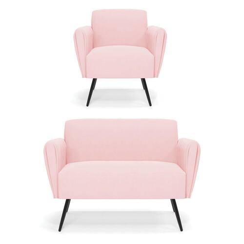 Só aqui na DRossi você encontra a decoração que você merece, com a praticidade que você precisa! O Sofá Namoradeira com Poltrona Bruna é uma peça de mobiliário moderna e elegante que pode ser usada em uma variedade de ambientes! Fica perfeita na sala, escritório, quarto, varanda coberta e onde mais preferir! Um móvel super reforçado, que possui uma estrutura em madeira de reflorestamento, ideal para garantir mais segurança e comodidade ao usuário. Revestido no Suede Rosa Bebê, seu estofamento é feito em espuma D-23 um material de alta qualidade, ideal para deixar o assento firme e mais resistente. Os pés palito de ferro adicionam um toque moderno e elegante à mobilia, oferecendo maior segurança e um visual de enriquecer qualquer espaço. Além do mais, a braças da poltrona possui detalhes sutis e discretos com frisos no tecido, que oferecem uma aparência extremamente sofisticada à peça. O Sofá Namoradeira com Poltrona Bruna é uma excelente opção para quem deseja adicionar um toque de estilo e luxuosidade a qualquer cômodo. Se você está procurando por um móvel confortável e elegante, este conjunto é a escolha perfeita para você.