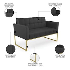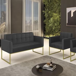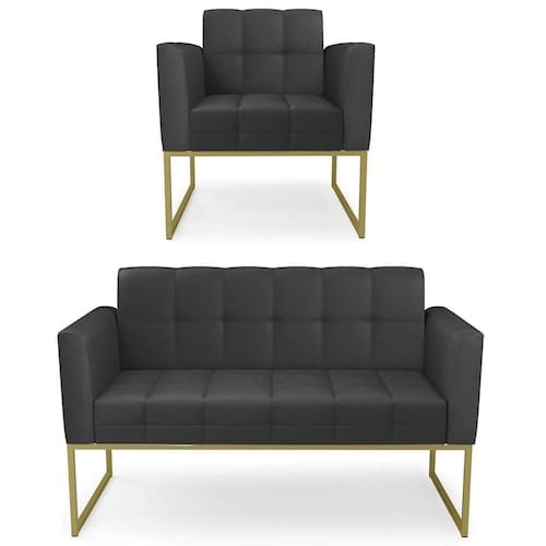 O Sofá Namoradeira e 1 Poltrona Base Industrial Dourado Ana Sintético Preto, da Ibiza é o conjunto ideal para quem busca beleza, conforto e versatilidade. Você pode usar na sua Sala De Estar, recepção ou qualquer outro ambiente que desejar.