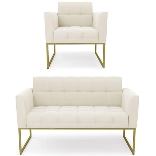 O Sofá Namoradeira e 1 Poltrona Base Industrial Dourado Ana Veludo Bege, da Ibiza é o conjunto ideal para quem busca beleza, conforto e versatilidade. Você pode usar na sua Sala De Estar, recepção ou qualquer outro ambiente que desejar.