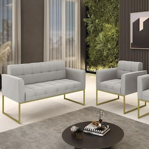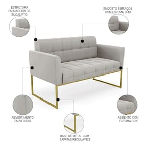 O Sofá Namoradeira e 1 Poltrona Base Industrial Dourado Ana Veludo Cinza, da Ibiza é o conjunto ideal para quem busca beleza, conforto e versatilidade. Você pode usar na sua Sala De Estar, recepção ou qualquer outro ambiente que desejar.