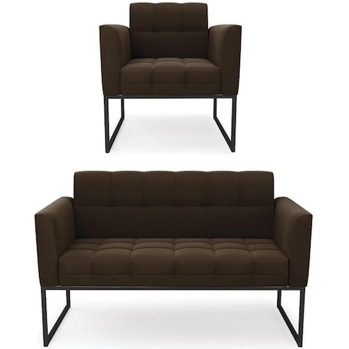 O Sofá Namoradeira e 1 Poltrona Base Industrial Preto Ana Suede Marrom, da Ibiza é o conjunto ideal para quem busca beleza, conforto e versatilidade. Você pode usar na sua Sala De Estar, recepção ou qualquer outro ambiente que desejar.