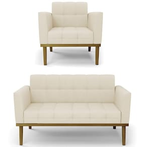O Sofá Namoradeira e 1 Poltrona Base Madeira Castanho Ana Linho Bege, da Ibiza é o conjunto ideal para quem busca beleza, conforto e versatilidade. Você pode usar na sua Sala De Estar, recepção ou qualquer outro ambiente que desejar.