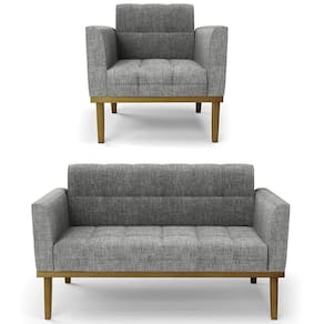 O Sofá Namoradeira e a Poltrona Decorativa são revestidos em Linho, que é fácil de limpar e valoriza o design das peças. Eles têm braços e encosto em espuma D-18 e assento em espuma D-26, que oferecem firmeza e aconchego para você relaxar. A base em madeira de eucalipto castanho é um detalhe charmoso, que dá um toque rústico e sofisticado ao conjunto. O kit tem uma estrutura resistente e suporta até 120 kg cada peça. A montagem é simples, pois as peças já vêm prontas, bastando fixar a base com os parafusos que acompanham o produto. A limpeza é prática, pois basta usar um pano limpo e levemente úmido, sem produtos abrasivos, para manter o seu kit sempre em bom estado. Hora de transformar seu ambiente com a Namoradeira 2 Lugares e a Poltrona para Sala deixando ainda mais confortável e estiloso.
