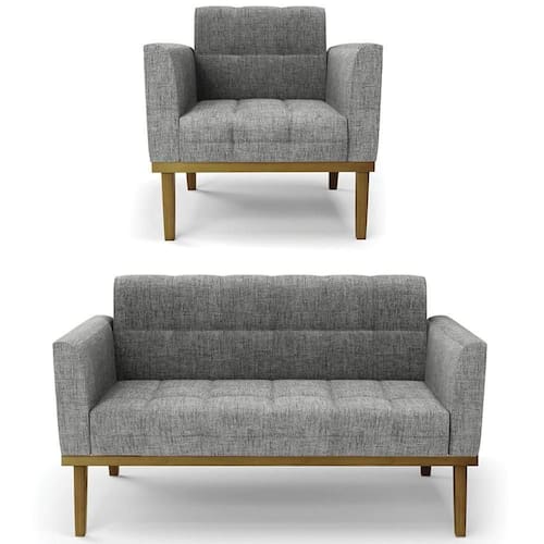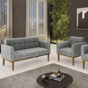O Sofá Namoradeira e 1 Poltrona Base Madeira Castanho Ana Linho Grafite, da Ibiza é o conjunto ideal para quem busca beleza, conforto e versatilidade. Você pode usar na sua Sala De Estar, recepção ou qualquer outro ambiente que desejar.