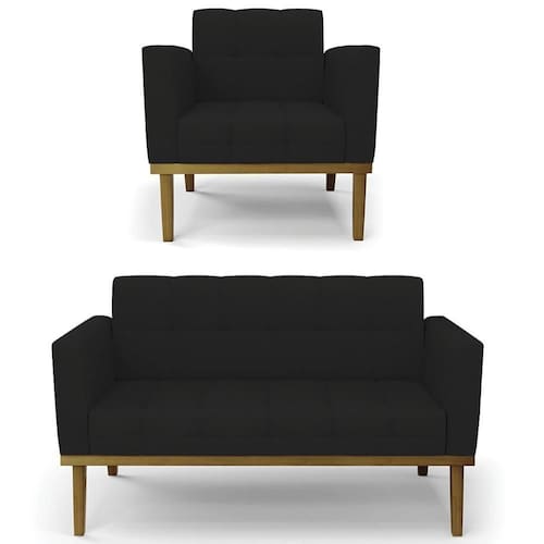 O Sofá Namoradeira e 1 Poltrona Base Madeira Castanho Ana Linho Preto, da Ibiza é o conjunto ideal para quem busca beleza, conforto e versatilidade. Você pode usar na sua Sala De Estar, recepção ou qualquer outro ambiente que desejar.
