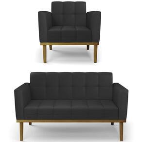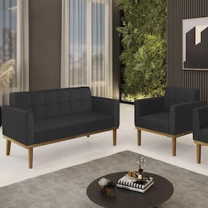 O Sofá Namoradeira e 1 Poltrona Base Madeira Castanho Ana Sintético Preto, da Ibiza é o conjunto ideal para quem busca beleza, conforto e versatilidade. Você pode usar na sua Sala De Estar, recepção ou qualquer outro ambiente que desejar.