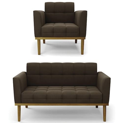 O Sofá Namoradeira e 1 Poltrona Base Madeira Castanho Ana Suede Marrom, da Ibiza é o conjunto ideal para quem busca beleza, conforto e versatilidade. Você pode usar na sua Sala De Estar, recepção ou qualquer outro ambiente que desejar.