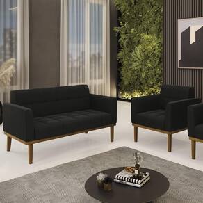 O Sofá Namoradeira e 1 Poltrona Base Madeira Castanho Ana Suede Preto, da Ibiza é o conjunto ideal para quem busca beleza, conforto e versatilidade. Você pode usar na sua Sala De Estar, recepção ou qualquer outro ambiente que desejar.