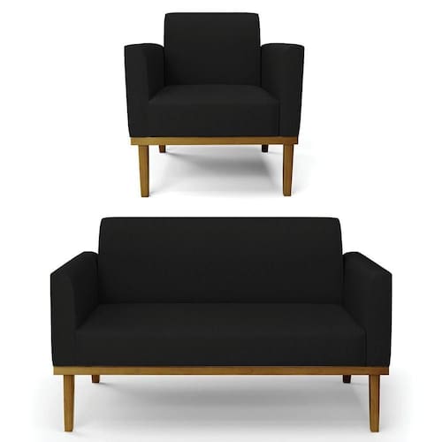 O Sofá Namoradeira e 1 Poltrona Base Madeira Castanho Maressa Linho Preto, da Ibiza é o conjunto ideal para quem busca beleza, conforto e versatilidade. Você pode usar na sua Sala De Estar, recepção ou qualquer outro ambiente que desejar.