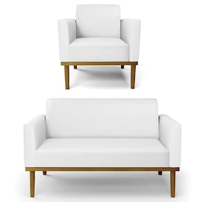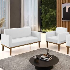 O Sofá Namoradeira e 1 Poltrona Base Madeira Castanho Maressa Sintético Branco, da Ibiza é o conjunto ideal para quem busca beleza, conforto e versatilidade. Você pode usar na sua Sala De Estar, recepção ou qualquer outro ambiente que desejar.