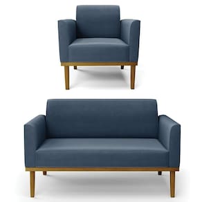 O Sofá Namoradeira e 1 Poltrona Base Madeira Castanho Maressa Suede Azul Marinho, da Ibiza é o conjunto ideal para quem busca beleza, conforto e versatilidade. Você pode usar na sua Sala De Estar, recepção ou qualquer outro ambiente que desejar.