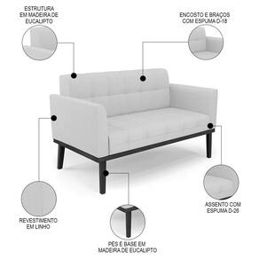 O Sofá Namoradeira e a Poltrona Decorativa são revestidos em Linho, que é fácil de limpar e valoriza o design das peças. Eles têm braços e encosto em espuma D-18 e assento em espuma D-26, que oferecem firmeza e aconchego para você relaxar. A base em madeira de eucalipto Preto é um detalhe charmoso, que dá um toque rústico e sofisticado ao conjunto. O kit tem uma estrutura resistente e suporta até 120 kg cada peça. A montagem é simples, pois as peças já vêm prontas, bastando fixar a base com os parafusos que acompanham o produto. A limpeza é prática, pois basta usar um pano limpo e levemente úmido, sem produtos abrasivos, para manter o seu kit sempre em bom estado. Hora de transformar seu ambiente com a Namoradeira 2 Lugares e a Poltrona para Sala deixando ainda mais confortável e estiloso.