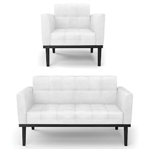 O Sofá Namoradeira e 1 Poltrona Base Madeira Preto Ana Sintético PU Branco, da Ibiza é o conjunto ideal para quem busca beleza, conforto e versatilidade. Você pode usar na sua Sala De Estar, recepção ou qualquer outro ambiente que desejar.
