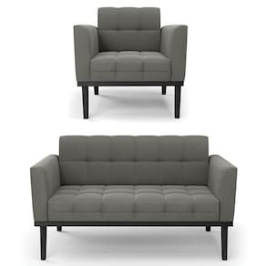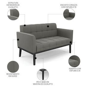 O Sofá Namoradeira e 1 Poltrona Base Madeira Preto Ana Suede Grafite, da Ibiza é o conjunto ideal para quem busca beleza, conforto e versatilidade. Você pode usar na sua Sala De Estar, recepção ou qualquer outro ambiente que desejar.