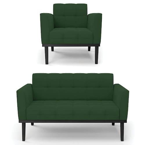 O Sofá Namoradeira e 1 Poltrona Base Madeira Preto Ana Veludo Verde, da Ibiza é o conjunto ideal para quem busca beleza, conforto e versatilidade. Você pode usar na sua Sala De Estar, recepção ou qualquer outro ambiente que desejar.