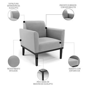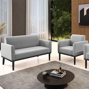O Sofá Namoradeira e 1 Poltrona Base Madeira Preto Maressa Suede Cinza, da Ibiza é o conjunto ideal para quem busca beleza, conforto e versatilidade. Você pode usar na sua Sala De Estar, recepção ou qualquer outro ambiente que desejar.
