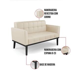 Você gosta de colecionar vários momentos memoráveis com sua família e amigos? Que tal recebê-los, com móveis de altíssima qualidade que só a D'Rossi tem? O Sofá Sofá Namoradeira e Poltrona Elisa é adequado para você! Seu design retrô é a grande tendência do momento. Pode ser utilizado em diversos espaços da casa, em salas, hall de entrada, quartos, cozinhas, varanda, sacada, escritório, dentre outros. Contém as seguintes características: A estrutura é feita de madeira de Eucalipto 100% de reflorestamento, e a Base de Madeira Fixa Preto, além de ser resistente e durável, suporta em média até 120 kg. Assento, encosto e braços, contém enchimento de espuma D-23 e é estofada em tecido Corino, no tom Bege, que oferece muito conforto e resistência ao sentar, com aquela sensação de maciez e aconchego. Possui também, detalhes de costura no encosto e assento, resultando em um acabamento impecável, conferindo muito mais valor e elegância ao seu espaço. Para complementar a decoração com esse lindo Kit Sofá Namoradeira e Poltrona Elisa, a dica é utilizar mantas, almofadas ou vasinho de flor. E pronto, seu cantinho estará perfeito para descansar e relaxar! Aqui, você encontra várias opções, para que seus amigos e familiares se sintam acolhidos. Garanta já seu Kit Sofá Namoradeira e 2 Poltronas Elisa.