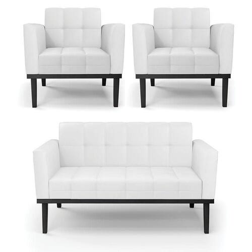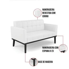 Você gosta de colecionar vários momentos memoráveis com sua família e amigos? Que tal recebê-los, com móveis de altíssima qualidade que só a D'Rossi tem? O Sofá Sofá Namoradeira e Poltrona Elisa é adequado para você! Seu design retrô é a grande tendência do momento. Pode ser utilizado em diversos espaços da casa, em salas, hall de entrada, quartos, cozinhas, varanda, sacada, escritório, dentre outros. Contém as seguintes características: A estrutura é feita de madeira de Eucalipto 100% de reflorestamento, e a Base de Madeira Fixa Preto, além de ser resistente e durável, suporta em média até 120 kg. Assento, encosto e braços, contém enchimento de espuma D-23 e é estofada em tecido Corino, no tom Branco, que oferece muito conforto e resistência ao sentar, com aquela sensação de maciez e aconchego. Possui também, detalhes de costura no encosto e assento, resultando em um acabamento impecável, conferindo muito mais valor e elegância ao seu espaço. Para complementar a decoração com esse lindo Kit Sofá Namoradeira e Poltrona Elisa, a dica é utilizar mantas, almofadas ou vasinho de flor. E pronto, seu cantinho estará perfeito para descansar e relaxar! Aqui, você encontra várias opções, para que seus amigos e familiares se sintam acolhidos. Garanta já seu Kit Sofá Namoradeira e 2 Poltronas Elisa.