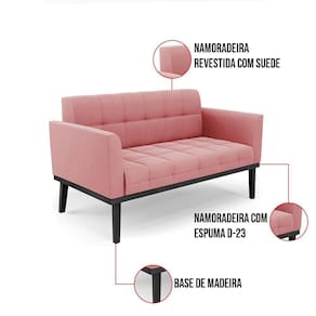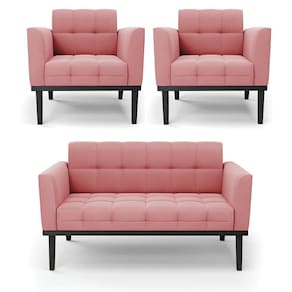 Você gosta de colecionar vários momentos memoráveis com sua família e amigos? Que tal recebê-los, com móveis de altíssima qualidade que só a D'Rossi tem? O Sofá Sofá Namoradeira e Poltrona Elisa é adequado para você! Seu design retrô é a grande tendência do momento. Pode ser utilizado em diversos espaços da casa, em salas, hall de entrada, quartos, cozinhas, varanda, sacada, escritório, dentre outros. Contém as seguintes características: A estrutura é feita de madeira de Eucalipto 100% de reflorestamento, e a Base de Madeira Fixa Preto, além de ser resistente e durável, suporta em média até 120 kg. Assento, encosto e braços, contém enchimento de espuma D-23 e é estofada em tecido Suede, no tom Rosê, que oferece muito conforto e resistência ao sentar, com aquela sensação de maciez e aconchego. Possui também, detalhes de costura no encosto e assento, resultando em um acabamento impecável, conferindo muito mais valor e elegância ao seu espaço. Para complementar a decoração com esse lindo Kit Sofá Namoradeira e Poltrona Elisa, a dica é utilizar mantas, almofadas ou vasinho de flor. E pronto, seu cantinho estará perfeito para descansar e relaxar! Aqui, você encontra várias opções, para que seus amigos e familiares se sintam acolhidos. Garanta já seu Kit Sofá Namoradeira e 2 Poltronas Elisa.