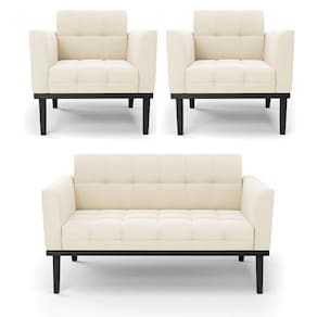 Você irá receber: 01 Sofá Namoradeira e 02 Poltronas - Entregue em: 03 Volumes