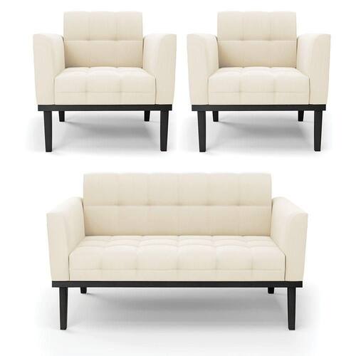 Sofá Namoradeira E 2 Poltronas Base De Madeira Preto Elisa Veludo D03 - D'rossi Cor Bege