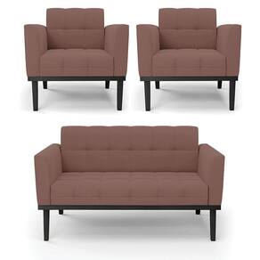 Você gosta de colecionar vários momentos memoráveis com sua família e amigos? Que tal recebê-los, com móveis de altíssima qualidade que só a D'Rossi tem? O Sofá Sofá Namoradeira e Poltrona Elisa é adequado para você! Seu design retrô é a grande tendência do momento. Pode ser utilizado em diversos espaços da casa, em salas, hall de entrada, quartos, cozinhas, varanda, sacada, escritório, dentre outros. Contém as seguintes características: A estrutura é feita de madeira de Eucalipto 100% de reflorestamento, e a Base de Madeira Fixa Preto, além de ser resistente e durável, suporta em média até 120 kg. Assento, encosto e braços, contém enchimento de espuma D-23 e é estofada em tecido Veludo, na cor Rosê, que oferece muito conforto e resistência ao sentar, com aquela sensação de maciez e aconchego. Possui também, detalhes de costura no encosto e assento, resultando em um acabamento impecável, conferindo muito mais valor e elegância ao seu espaço. Para complementar a decoração com esse lindo Kit Sofá Namoradeira e Poltrona Elisa, a dica é utilizar mantas, almofadas ou vasinho de flor. E pronto, seu cantinho estará perfeito para descansar e relaxar! Aqui, você encontra várias opções, para que seus amigos e familiares se sintam acolhidos. Garanta já seu Kit Sofá Namoradeira e 2 Poltronas Elisa.