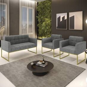 O Sofá Namoradeira e 2 Poltronas Base Industrial Dourado Ana Linho Grafite, da Ibiza é o conjunto ideal para quem busca beleza, conforto e versatilidade. Você pode usar na sua Sala De Estar, recepção ou qualquer outro ambiente que desejar.