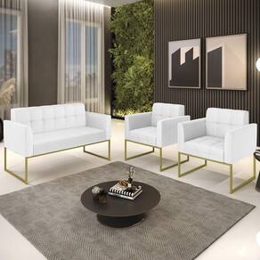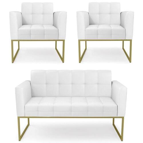 O Sofá Namoradeira e 2 Poltronas Base Industrial Dourado Ana Sintético Branco, da Ibiza é o conjunto ideal para quem busca beleza, conforto e versatilidade. Você pode usar na sua Sala De Estar, recepção ou qualquer outro ambiente que desejar.