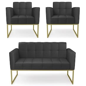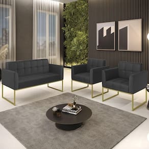 O Sofá Namoradeira e 2 Poltronas Base Industrial Dourado Ana Sintético Preto, da Ibiza é o conjunto ideal para quem busca beleza, conforto e versatilidade. Você pode usar na sua Sala De Estar, recepção ou qualquer outro ambiente que desejar.