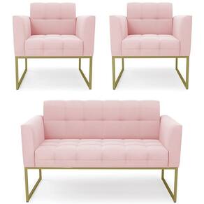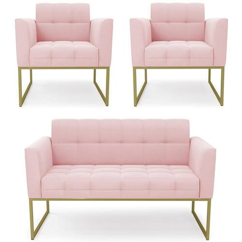 O Sofá Namoradeira e 2 Poltronas Base Industrial Dourado Ana Suede Rosa Bebê, da Ibiza é o conjunto ideal para quem busca beleza, conforto e versatilidade. Você pode usar na sua Sala De Estar, recepção ou qualquer outro ambiente que desejar.