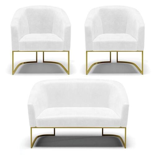 Você irá receber: 01 Sofá Namoradeira e 02 Poltronas - Entregue em: 03 Volumes