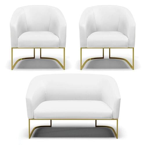 Você irá receber: 01 Sofá Namoradeira e 02 Poltronas - Entregue em: 03 Volumes