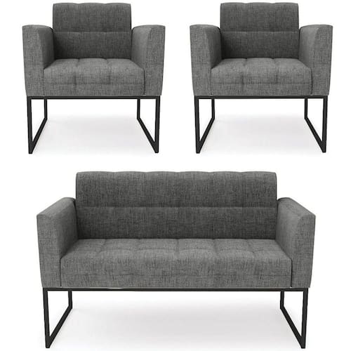 O Sofá Namoradeira e 2 Poltronas Base Industrial Preto Ana Linho Grafite, da Ibiza é o conjunto ideal para quem busca beleza, conforto e versatilidade. Você pode usar na sua Sala De Estar, recepção ou qualquer outro ambiente que desejar.