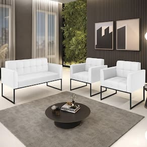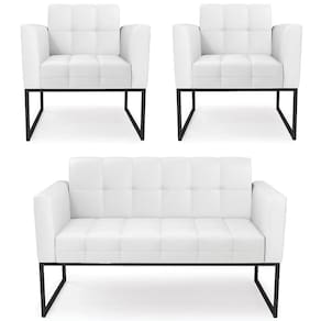 O Sofá Namoradeira e 2 Poltronas Base Industrial Preto Ana Sintético Branco, da Ibiza é o conjunto ideal para quem busca beleza, conforto e versatilidade. Você pode usar na sua Sala De Estar, recepção ou qualquer outro ambiente que desejar.