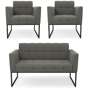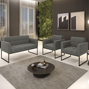 O Sofá Namoradeira e 2 Poltronas Base Industrial Preto Ana Suede Grafite, da Ibiza é o conjunto ideal para quem busca beleza, conforto e versatilidade. Você pode usar na sua Sala De Estar, recepção ou qualquer outro ambiente que desejar.