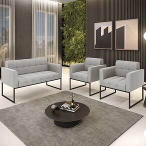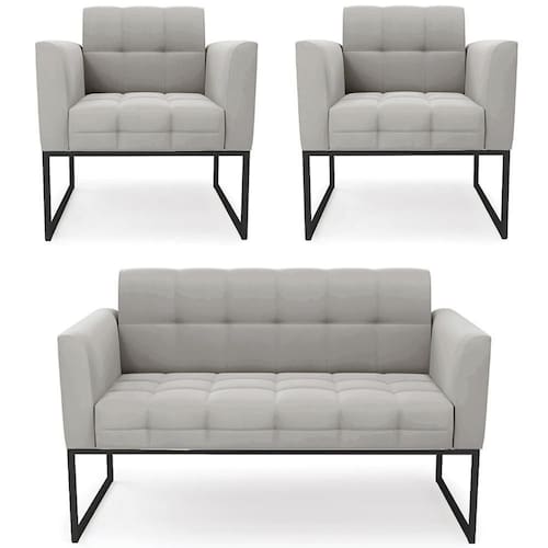 O Sofá Namoradeira e 2 Poltronas Base Industrial Preto Ana Veludo Cinza, da Ibiza é o conjunto ideal para quem busca beleza, conforto e versatilidade. Você pode usar na sua Sala De Estar, recepção ou qualquer outro ambiente que desejar.