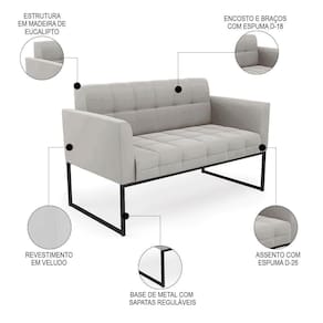 O Sofá Namoradeira e a Poltrona Decorativa são revestidos em Veludo, que é fácil de limpar e valoriza o design das peças. Eles têm braços e encosto em espuma D-18 e assento em espuma D-26, que oferecem firmeza e aconchego para você relaxar. A base industrial é um detalhe charmoso, que dá um toque moderno e sofisticado ao conjunto. O kit tem uma estrutura resistente e suporta até 120 kg cada peça. A montagem é simples, pois as peças já vêm prontas, bastando fixar a base com os parafusos que acompanham o produto. A limpeza é prática, pois basta usar um pano limpo e levemente úmido, sem produtos abrasivos, para manter o seu kit sempre em bom estado. Hora de transformar seu ambiente com a Namoradeira 2 Lugares e a Poltrona para Sala deixando ainda mais confortável e estiloso.