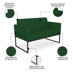 O Sofá Namoradeira e 2 Poltronas Base Industrial Preto Ana Veludo Luxo Verde, da Ibiza é o conjunto ideal para quem busca beleza, conforto e versatilidade. Você pode usar na sua Sala De Estar, recepção ou qualquer outro ambiente que desejar.