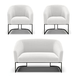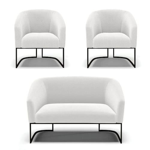 O Sofá Namoradeira 2 lugares e 2 Poltronas Stella é uma peça que combina elegância, conforto e durabilidade. Este conjunto tem um design moderno e sofisticado, com Base Industrial Preto e revestimento em tecido Bouclê Off White, que harmonizam com qualquer ambiente. Ele é ideal para sala de estar, recepções, mesa de jantar ou qualquer outro espaço que você queira decorar com estilo e bom gosto. Ele tem uma estrutura em madeira de reflorestamento eucalipto, que garante a resistência e a sustentabilidade do produto. Ele suporta até 120 kg de peso, podendo ser utilizado por pessoas de diferentes biotipos. Ele tem um acabamento reforçado e espuma de qualidade D23, que oferece maciez e aconchego. Tem pés em aço carbono e pintura eletrostática, que protegem o produto contra corrosão e desgaste. Ele tem assento com persintas elásticas, que proporcionam flexibilidade e conforto. O kit Stella é um produto de alta qualidade, beleza e funcionalidade. Ele é fácil de transportar, pois tem um peso leve e um tamanho compacto. O Sofá Namoradeira 2 lugares e 2 Poltronas Stella é um produto que vai fazer a diferença na sua decoração e no seu bem-estar. Ele vai trazer charme, conforto e durabilidade para o seu ambiente. Aproveite essa oferta e leve para casa um Sofá Namoradeira 2 lugares e 2 Poltronas qualidade por um preço incrível. Essa é a sua chance de ter um kit maravilhoso por um preço imperdível. Corra e garanta seu Sofá Namoradeira 2 lugares e 2 Poltronas antes que acabe o estoque!