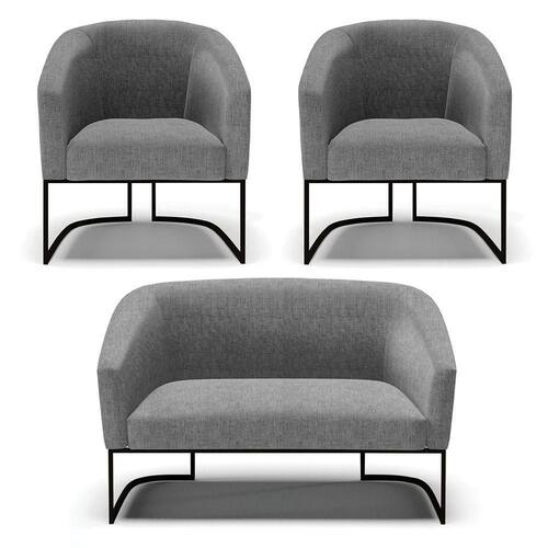 Você irá receber: 01 Sofá Namoradeira e 02 Poltronas - Entregue em: 03 Volumes