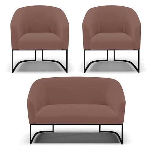 Você irá receber: 01 Sofá Namoradeira e 02 Poltronas - Entregue em: 03 Volumes