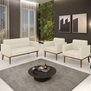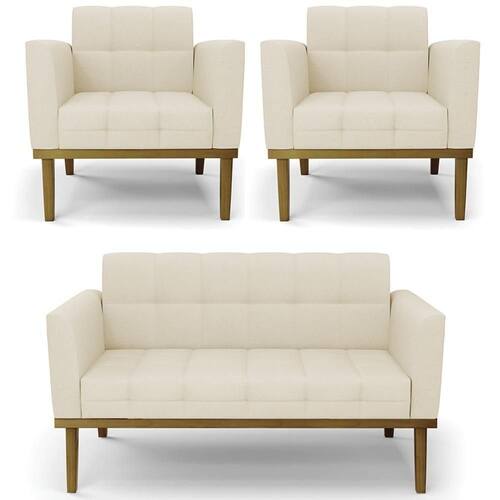 O Sofá Namoradeira e 2 Poltronas Base Madeira Castanho Ana Linho Bege, da Ibiza é o conjunto ideal para quem busca beleza, conforto e versatilidade. Você pode usar na sua Sala De Estar, recepção ou qualquer outro ambiente que desejar.