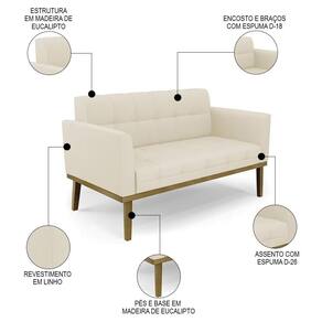 O Sofá Namoradeira e a Poltrona Decorativa são revestidos em Linho, que é fácil de limpar e valoriza o design das peças. Eles têm braços e encosto em espuma D-18 e assento em espuma D-26, que oferecem firmeza e aconchego para você relaxar. A base em madeira de eucalipto castanho é um detalhe charmoso, que dá um toque rústico e sofisticado ao conjunto. O kit tem uma estrutura resistente e suporta até 120 kg cada peça. A montagem é simples, pois as peças já vêm prontas, bastando fixar a base com os parafusos que acompanham o produto. A limpeza é prática, pois basta usar um pano limpo e levemente úmido, sem produtos abrasivos, para manter o seu kit sempre em bom estado. Hora de transformar seu ambiente com a Namoradeira 2 Lugares e a Poltrona para Sala deixando ainda mais confortável e estiloso.