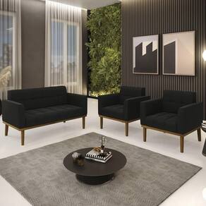 O Sofá Namoradeira e 2 Poltronas Base Madeira Castanho Ana Suede Preto, da Ibiza é o conjunto ideal para quem busca beleza, conforto e versatilidade. Você pode usar na sua Sala De Estar, recepção ou qualquer outro ambiente que desejar.