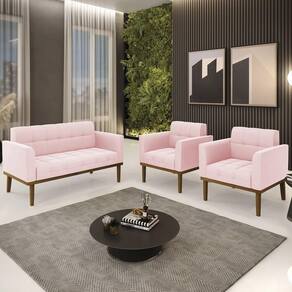 O Sofá Namoradeira e 2 Poltronas Base Madeira Castanho Ana Suede Rosa Bebê, da Ibiza é o conjunto ideal para quem busca beleza, conforto e versatilidade. Você pode usar na sua Sala De Estar, recepção ou qualquer outro ambiente que desejar.